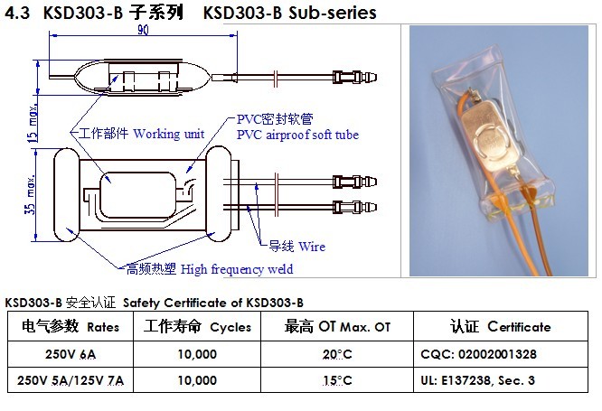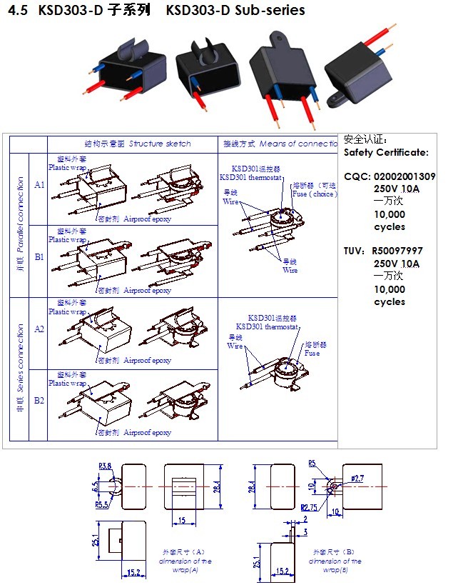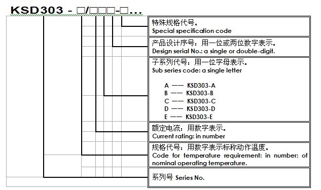 按照不同的結(jié)構(gòu),KSD303系列劃分為5個子系列,分別是:KSD303-A、KSD303-B、KSD303-C、KSD303-D。